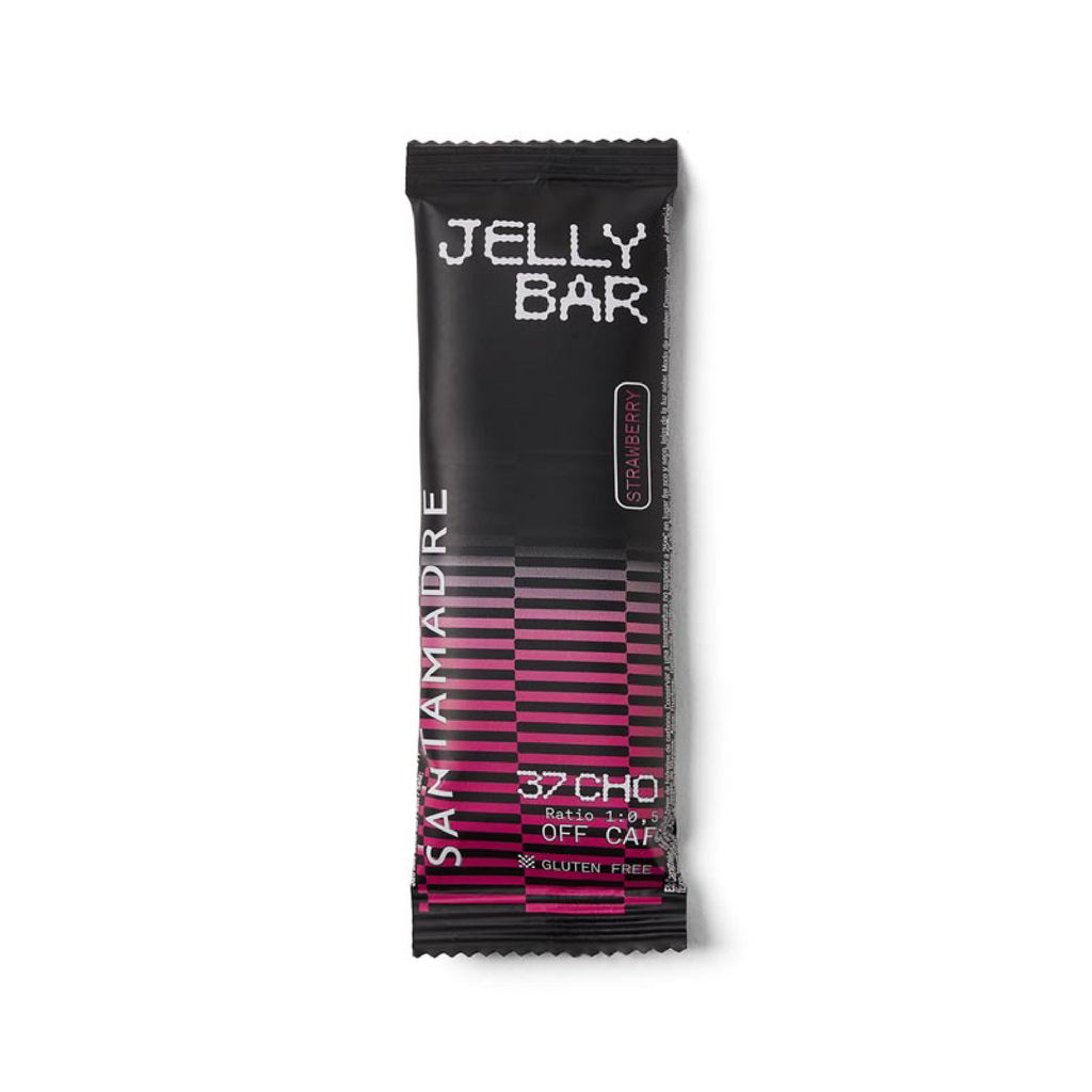 JELLY BAR RATIO 1:0,5 es una deliciosa para tomar durante el esfuerzo, gracias a su nueva formulación cuenta con 37g de hidratos de carbono con un RATIO de absorción 1:0,5.